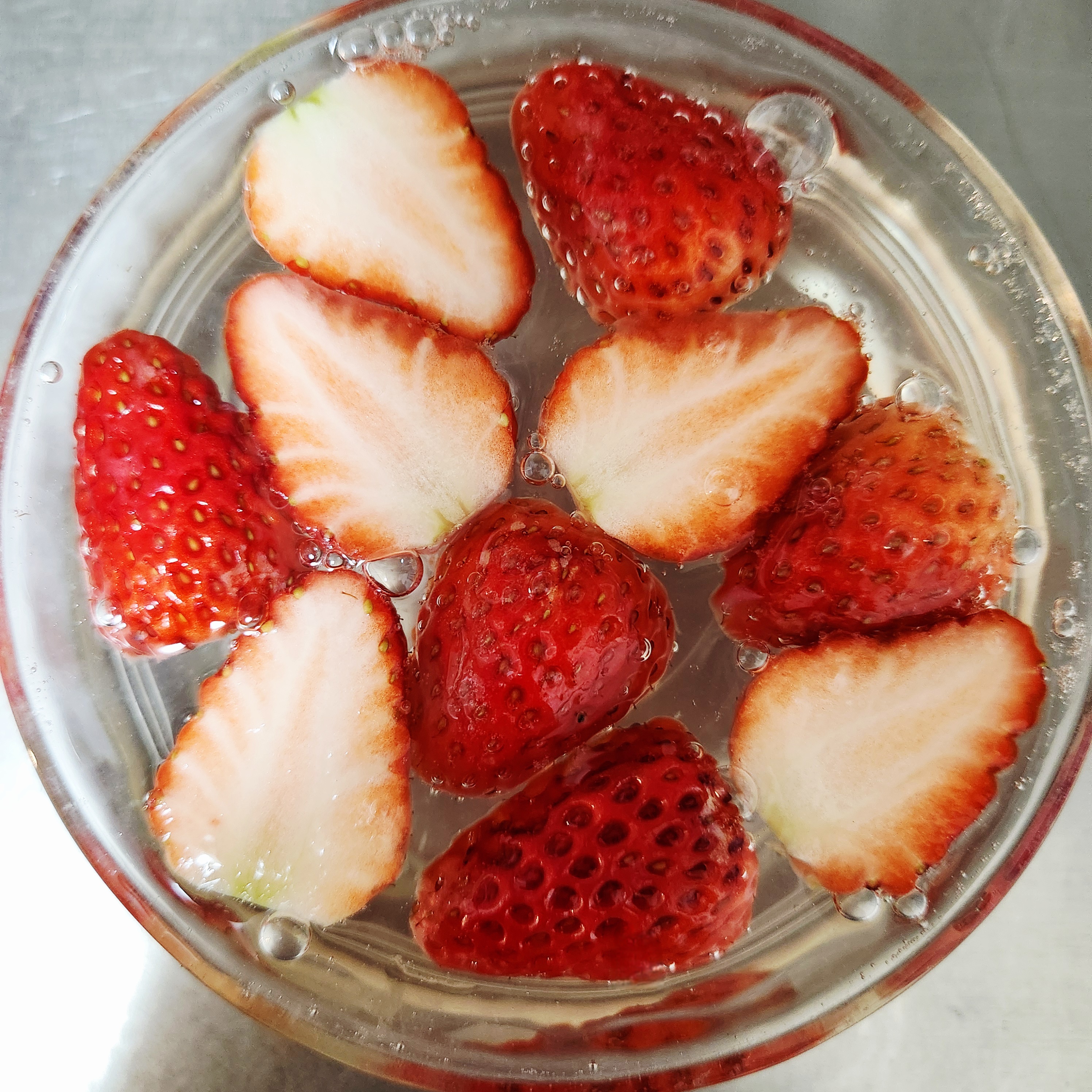苺寒天 水アブクが春らしい